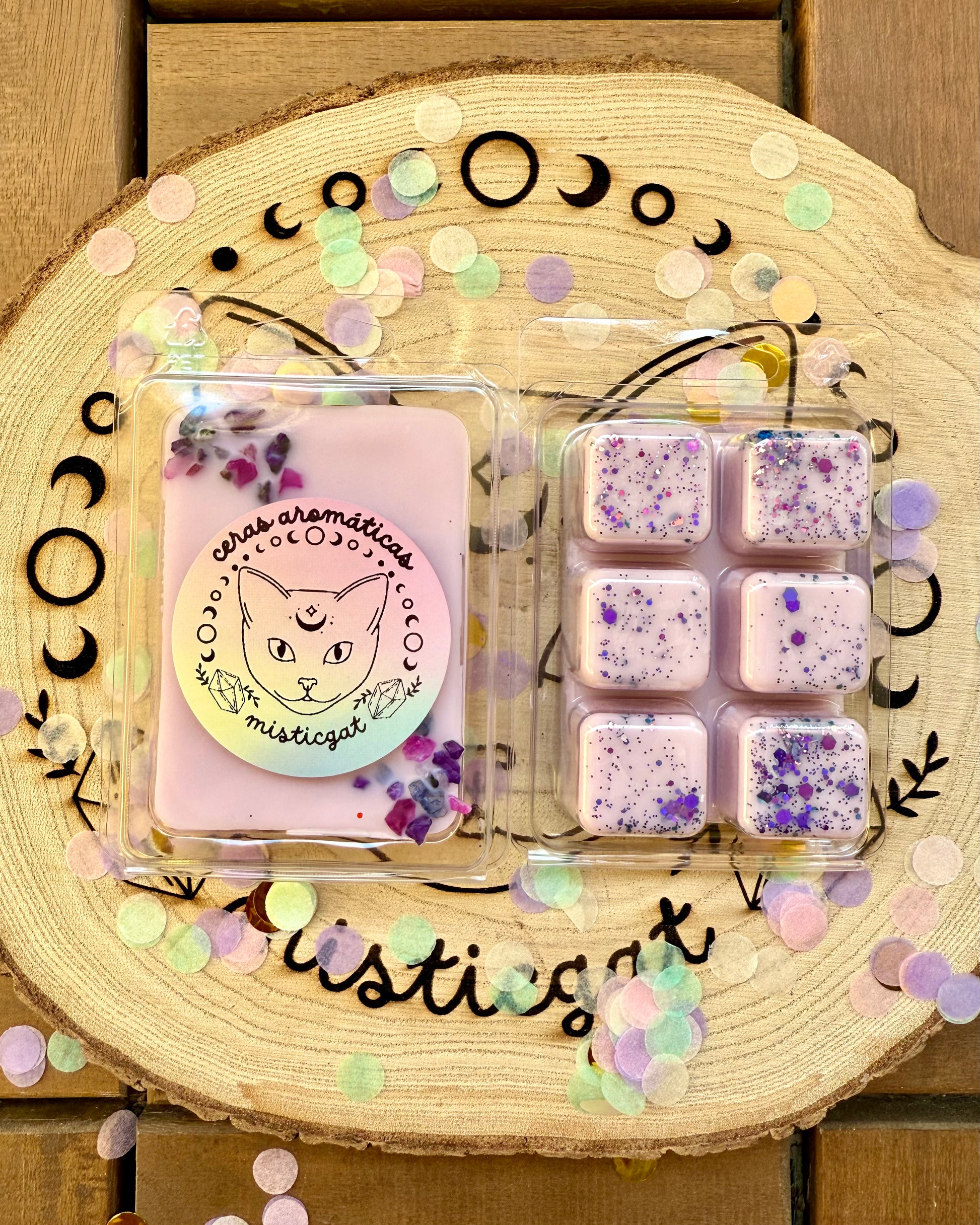 Estas ceras nacen de un lugar muy especial en el corazón de Misticgat, creadas para celebrar nuestro primer año juntas. Son un susurro de gratitud convertido en aroma, un regalo para agradecerte por cada momento compartido, cada palabra mágica y cada pedacito de confianza que has depositado en esta pequeña gran familia mística.