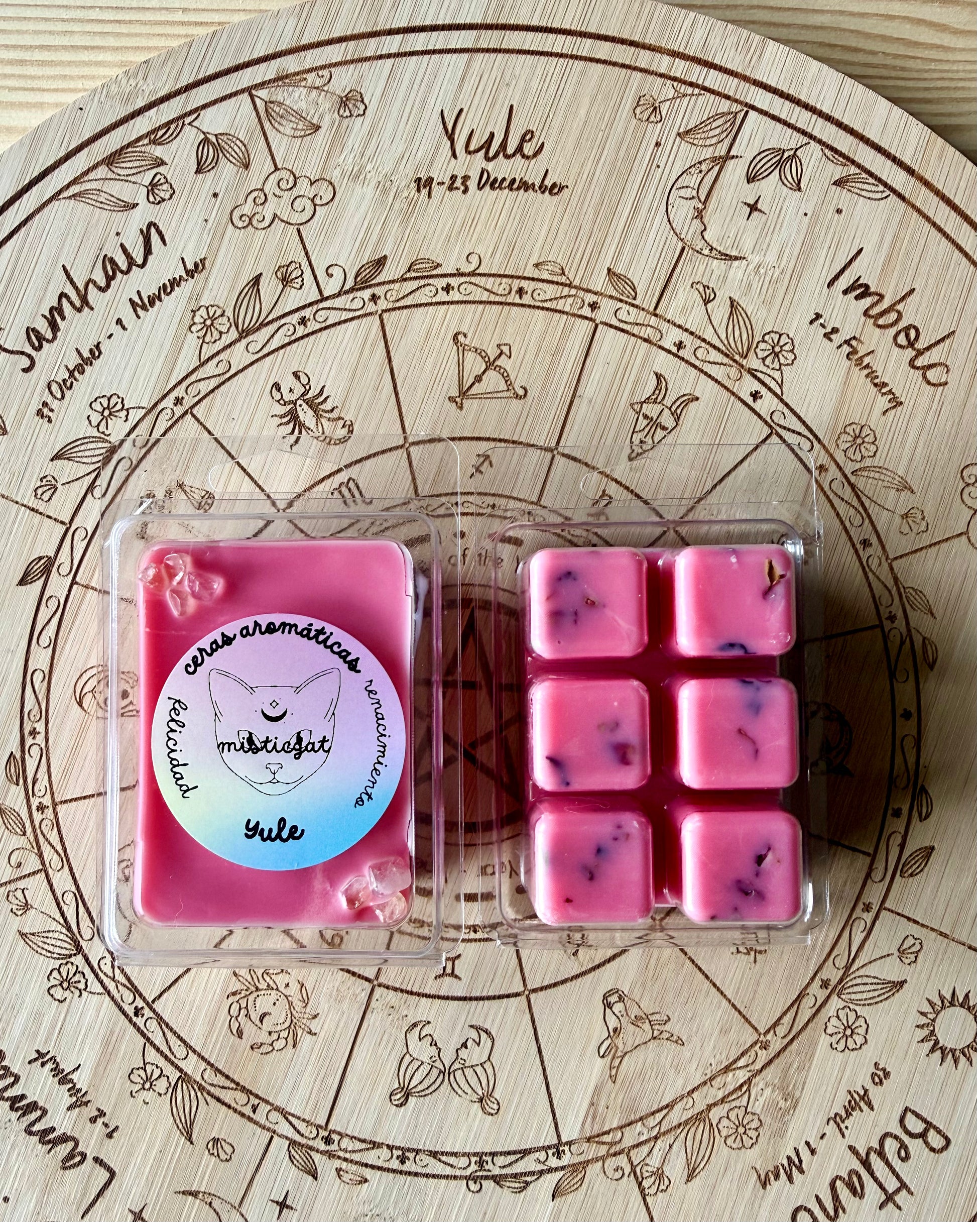 Estas ceras han sido creadas para conectar con la energía de Yule, el solsticio de invierno, cuando la oscuridad alcanza su punto más profundo y la Luz renace dentro y fuera de nosotros. Representan el calor del hogar, el amor compartido y la promesa del nuevo ciclo que comienza.