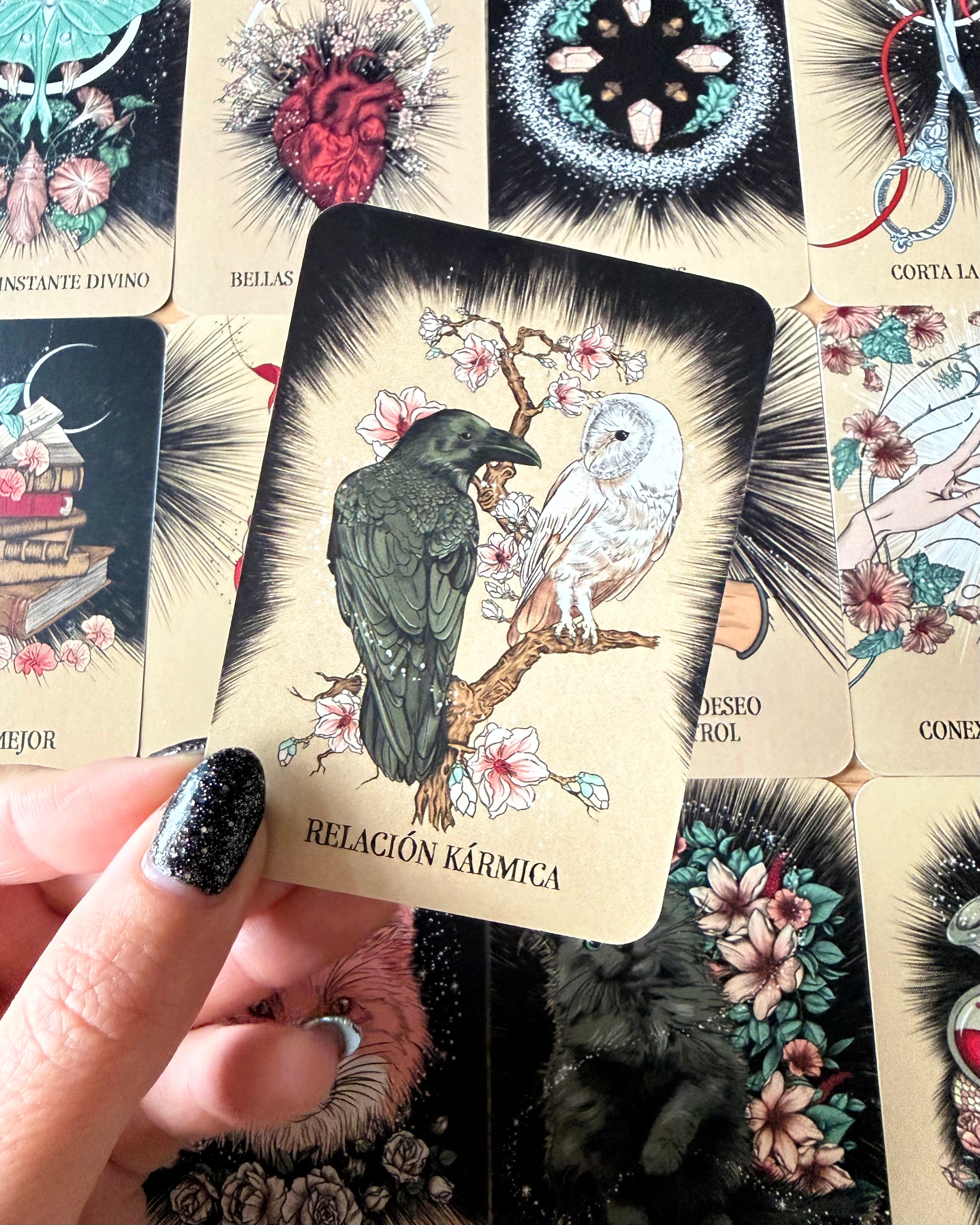 Desvela los misterios del amor gracias a este práctico oráculo que podrás llevar contigo a todas partes. Esta pequeña baraja de trece cartas refleja el estilo único de Athene Noctua en sus increíbles ilustraciones, creadas de belleza y misticismo. Recurre a esta valiosa herramienta para recibir ayuda divina en los asuntos del corazón, tanto si buscas el amor verdadero como si intentas detectar las señales de alerta que te rodean. Deja que este oráculo ilumine tu camino hacia la verdad del amor, dondequiera que la vida te conduzca.