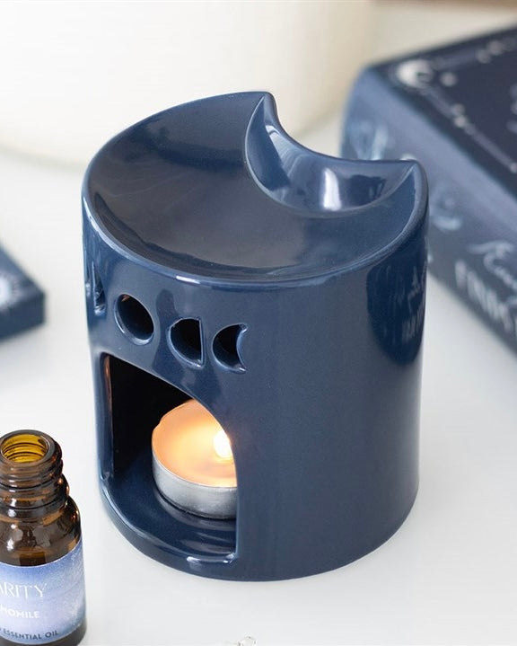 Este quemador en forma de luna creciente, disponible en blanco y azul marino, está diseñado para llenar tu hogar de calma y energía lunar durante todo el año. Sus fases lunares troqueladas proyectan una luz suave y ritual, creando un ambiente perfecto para conectar contigo y con tus intenciones.
