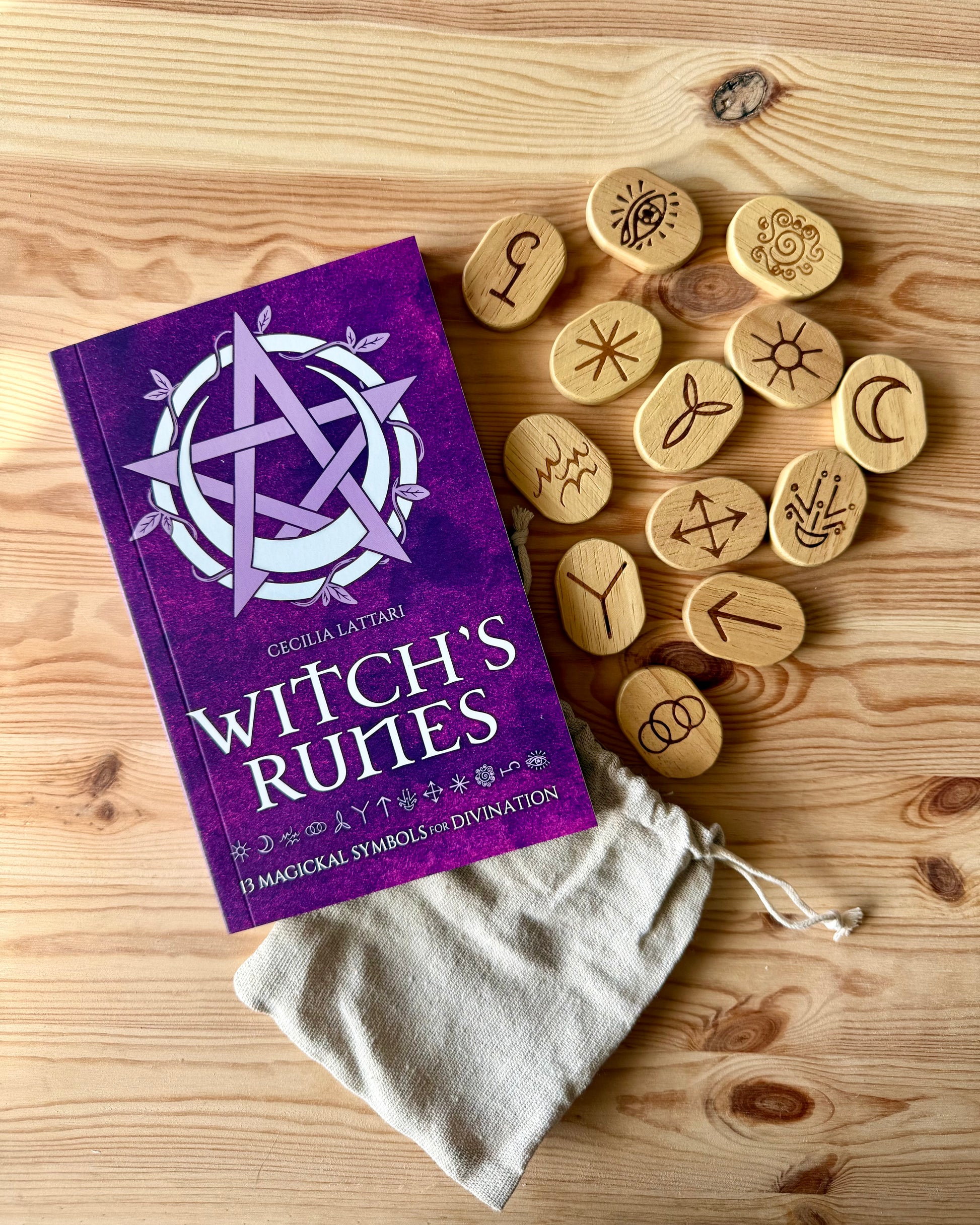 Este precioso set de runas de bruja de madera ha sido creado para conectar con tu intuición y desvelar los mensajes que el universo tiene para ti.