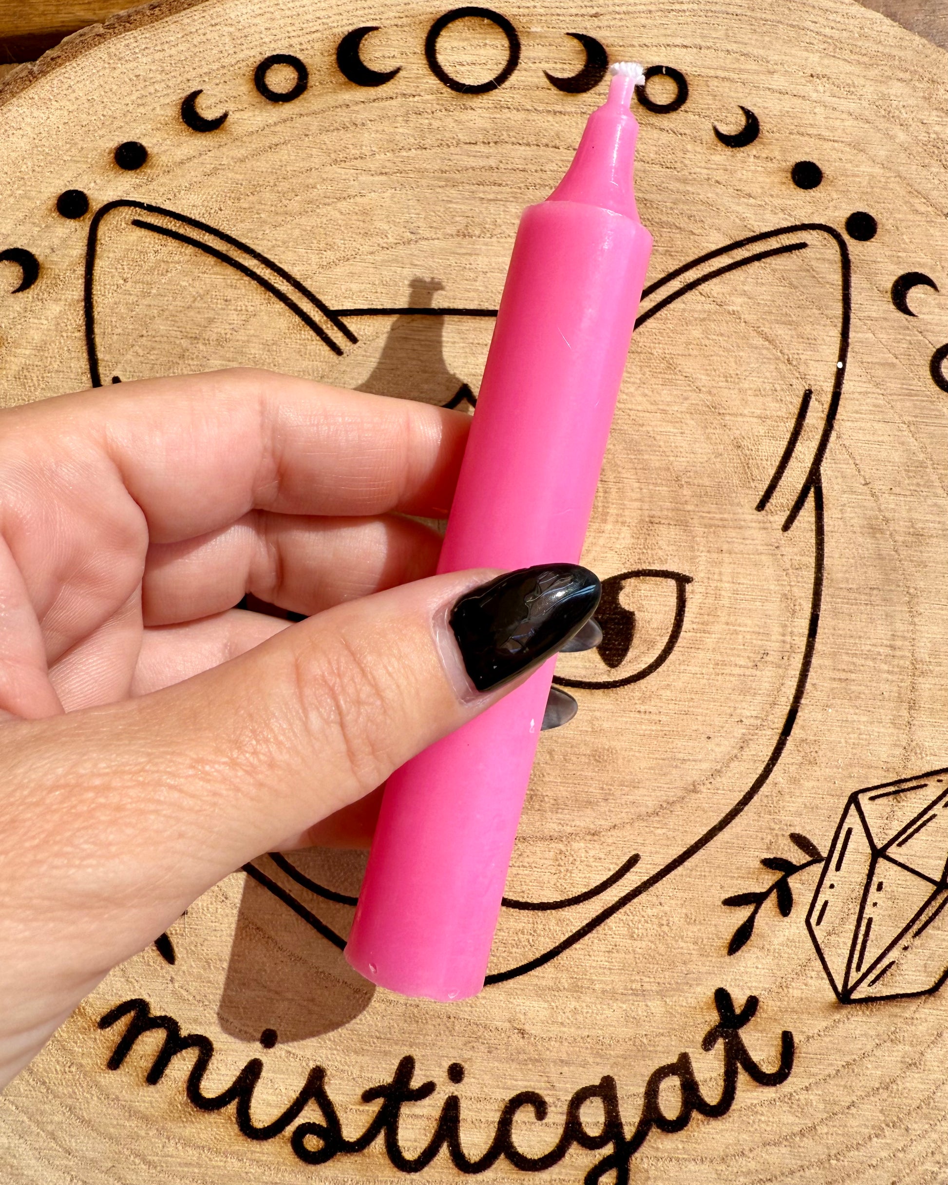 El rosa favorece el amor, la ternura y la compasión, ideal para rituales de amor propio, afecto y relaciones armoniosas. Úsala para llenar tu espacio de suavidad, cariño y energía positiva.